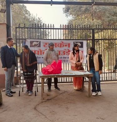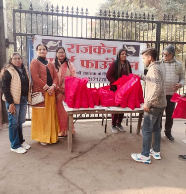 On the auspicious occasion of Makar Sankranti, Rajcan Support Foundation organized a distribution drive at Lady Hardinge Hospital, reaching out to 120–150 cancer patients. Essential items such as jaggery, gajak, revri, roasted peanuts, and warm mufflers were distributed.